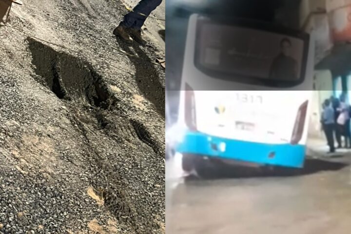 Ônibus atola após solo ceder na Praça da Bandeira, em Além ParaíbaAté o momento, não há informações de feridos.